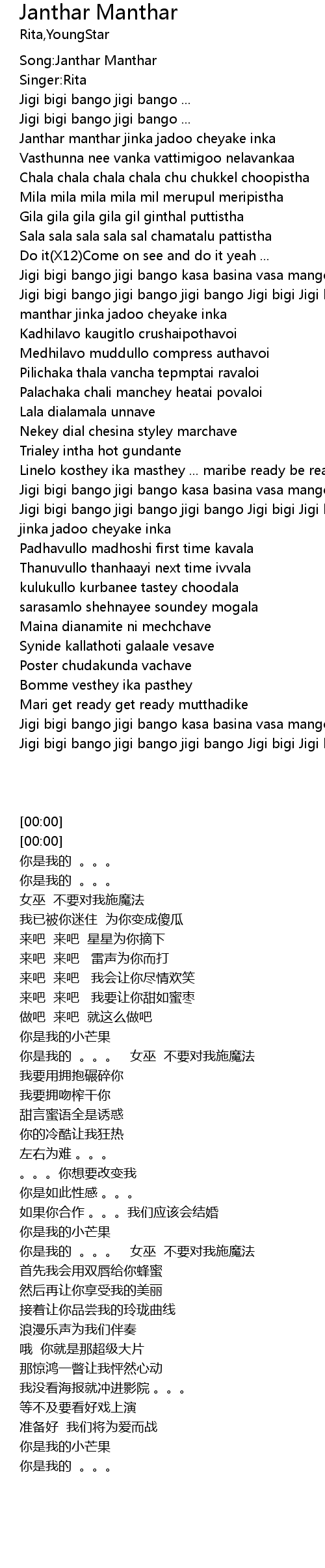 Jigi bigi bango jigi bango jigi bango Jigi bigi Jigi bigi ... Janthar manthar jinka jadoo cheyake inka |