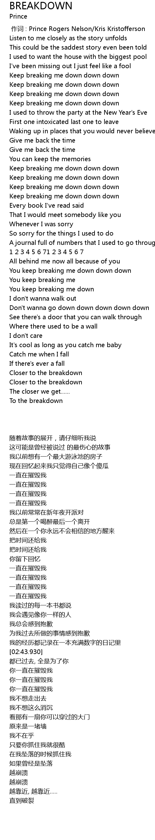 | [00:00.00] | 作词 : Prince Rogers Nelson/Kris Kristofferson |