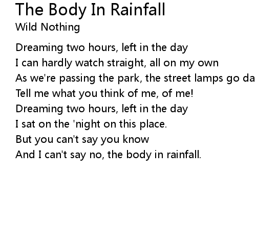 | 歌曲 | The Body In Rainfall |