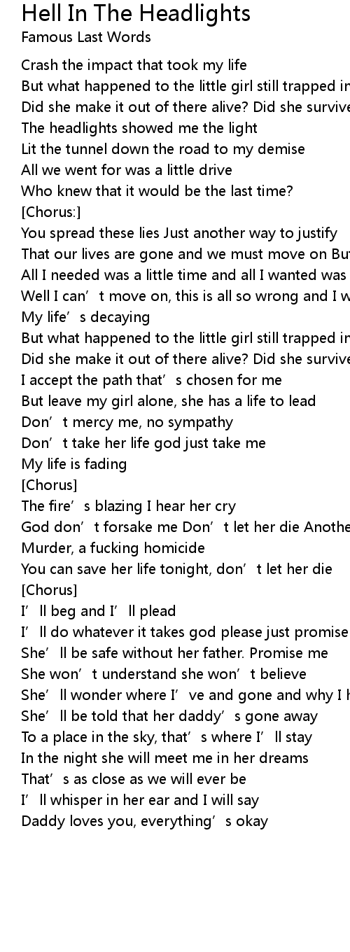 | God don’t forsake me Don’t let her die Another victim of a DUI | |