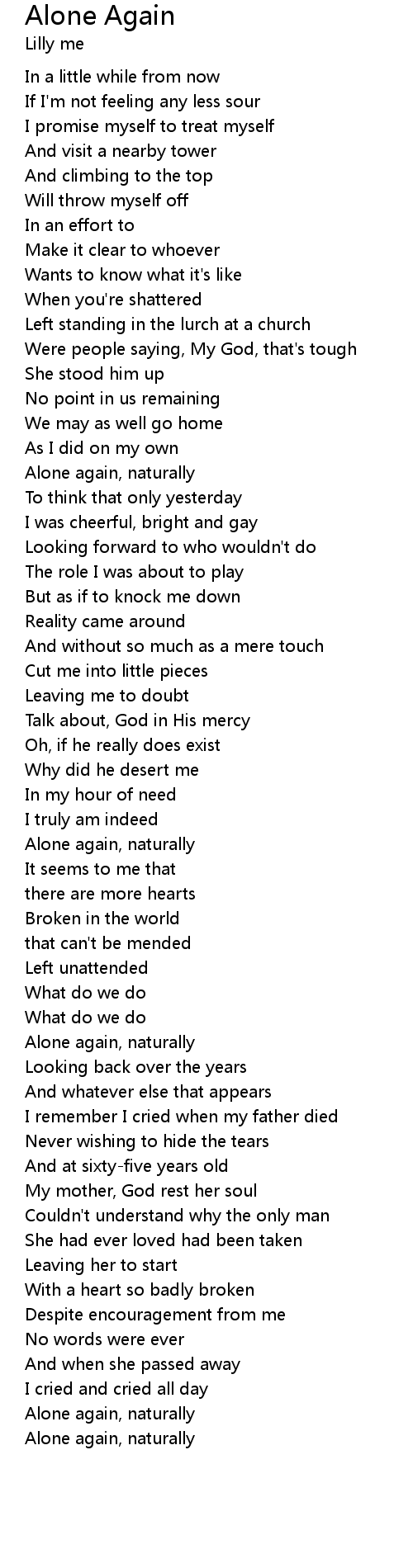 Alone again, naturally |