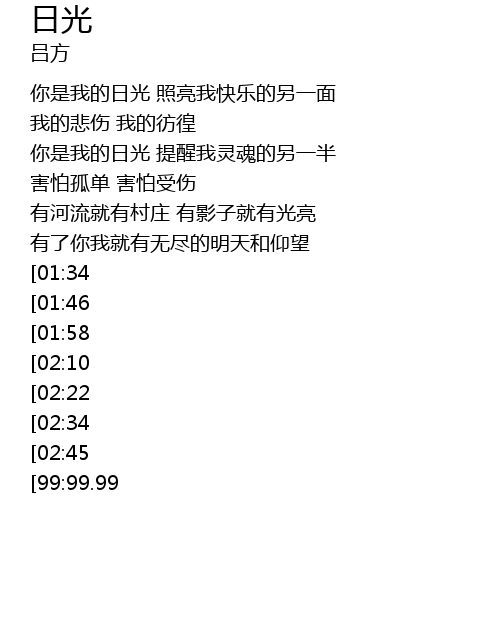 | [03:57][02:34] | 你是我的日光 |