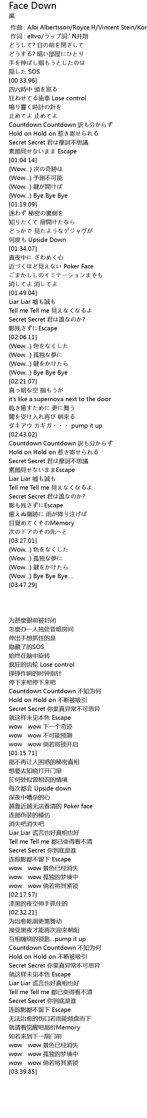 | [01:38.19] | 越靠近越无法看清的 Poker face |