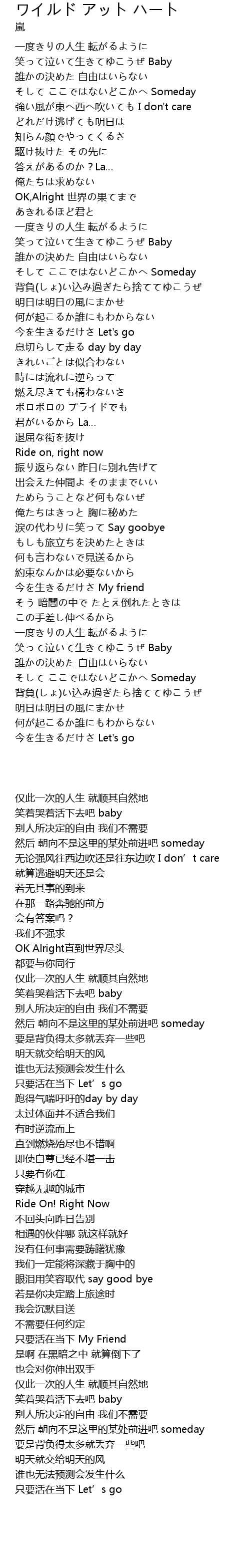 | [01:50.150] | 今を生きるだけさ Let's go |