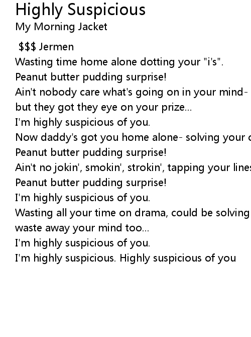 I'm highly suspicious. Highly suspicious of you |