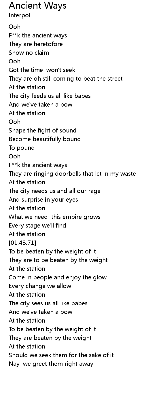 | [00:07.39] | F**k the ancient ways |