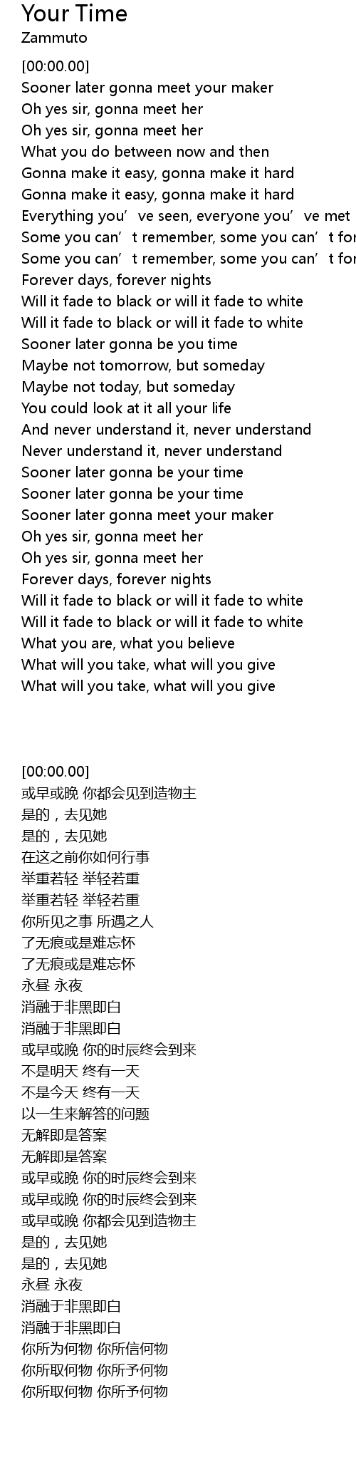 | [02:14.52] | 或早或晚 你都会见到造物主 |