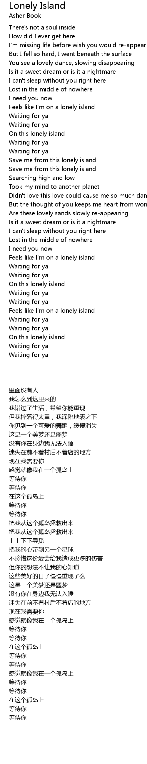 Feels like I'm on a lonely island |