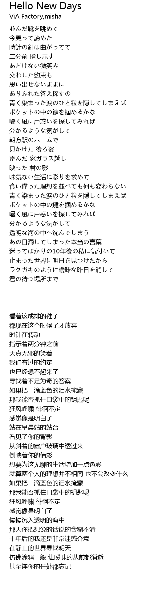 | 歌曲 | Hello New Days |
