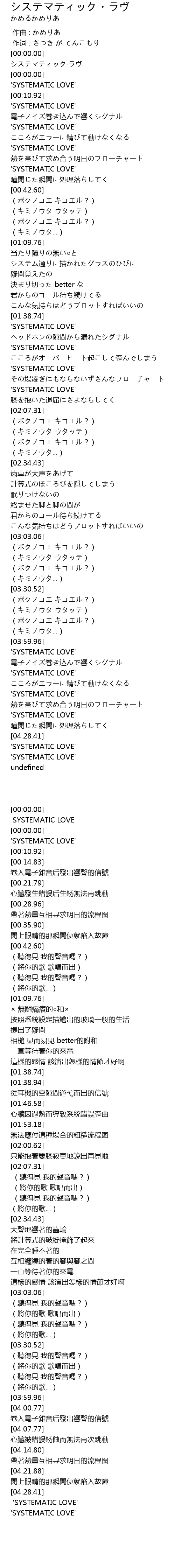 | [00:01.03] | 'SYSTEMATIC LOVE' |