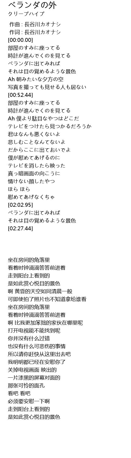 作词 : 長谷川カオナシ |