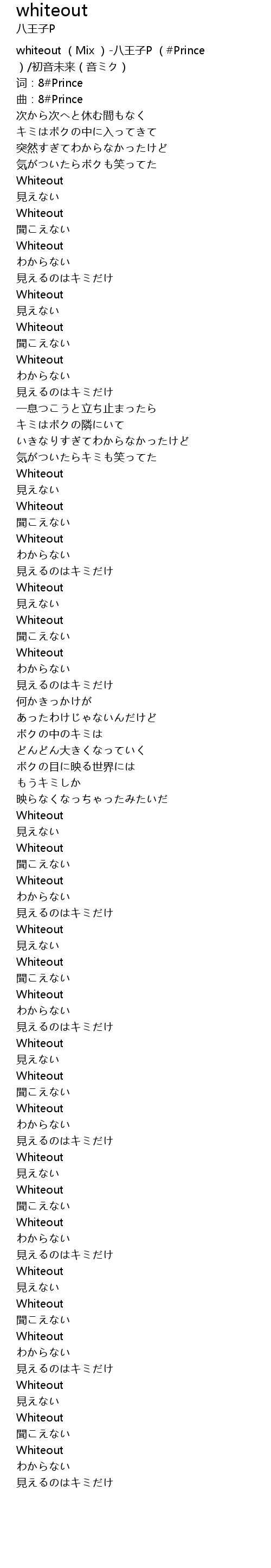 | [00:00.00] | whiteout (Mix )-八王子P (#Prince )/初音未来(音ミク) |