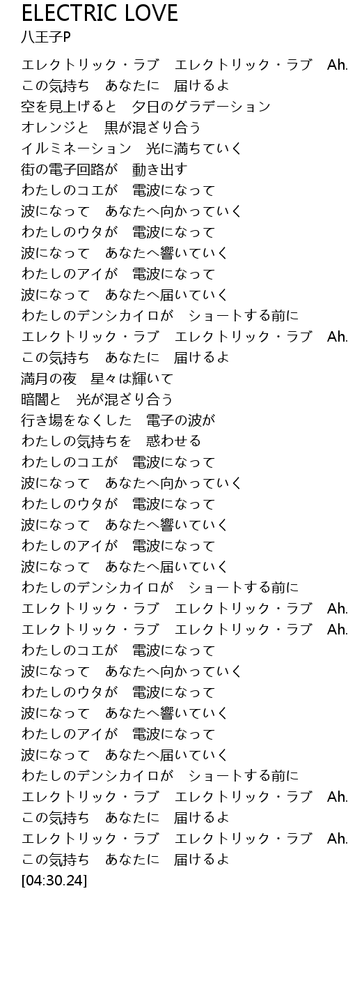 | [04:15.72] | エレクトリック・ラブ エレクトリック・ラブ Ah... |