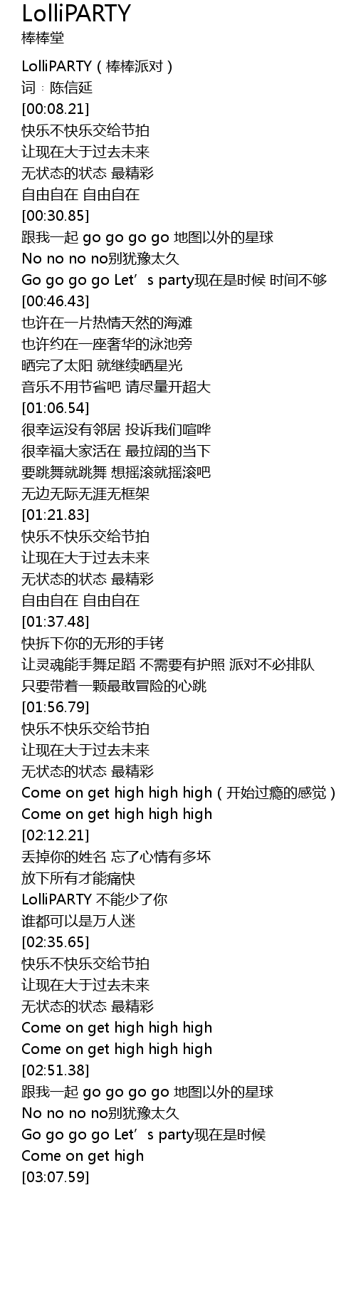 | [02:26.67] | LolliPARTY bù néng shǎo le nǐ |