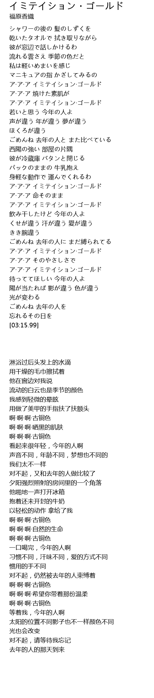 | [02:37.19] | ア·ア·ア イミテイション·ゴールド |