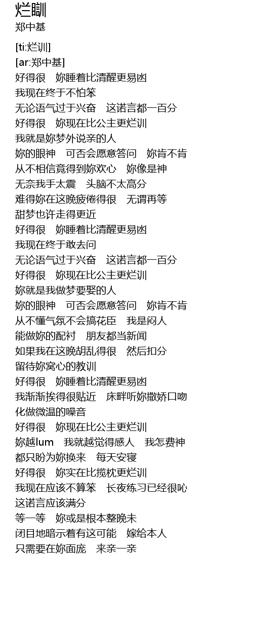 | [01:25.511] | 好得很 妳睡着比清醒更易凼 |