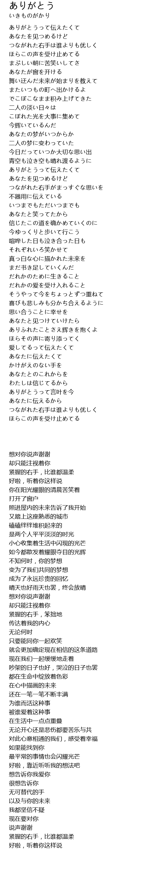 | 歌曲 | ありがとう |