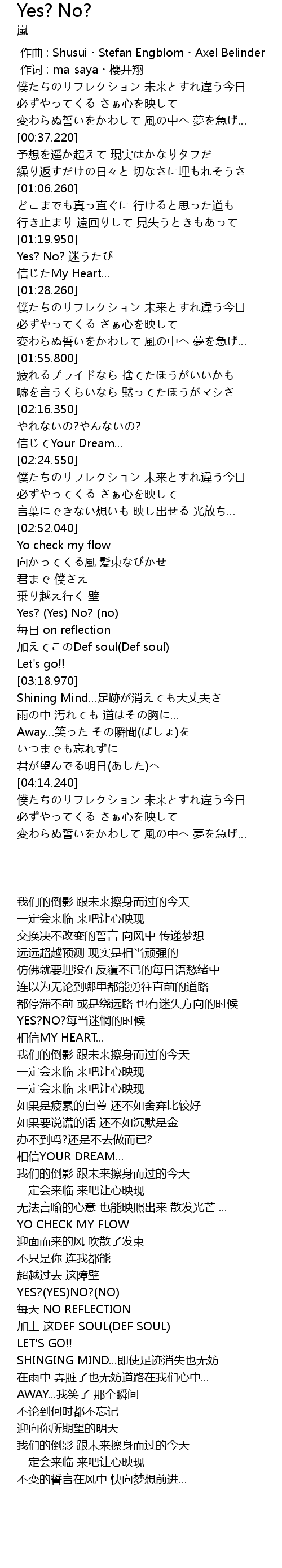 | [01:20.830] | YES?NO?每当迷惘的时候 |