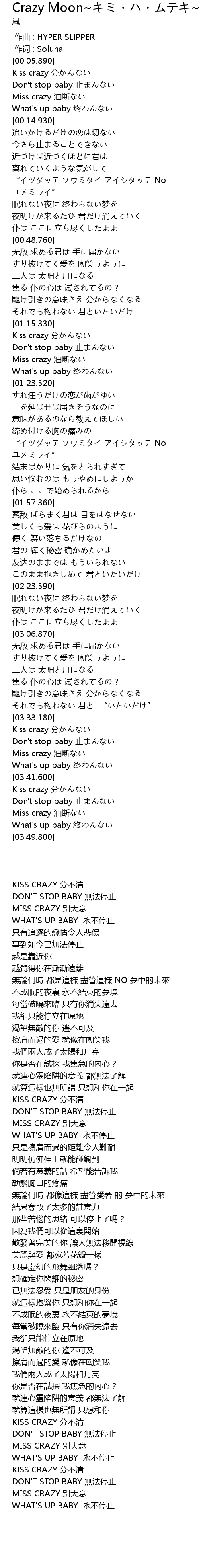 | [03:34.650] | KISS CRAZY 分不清 |