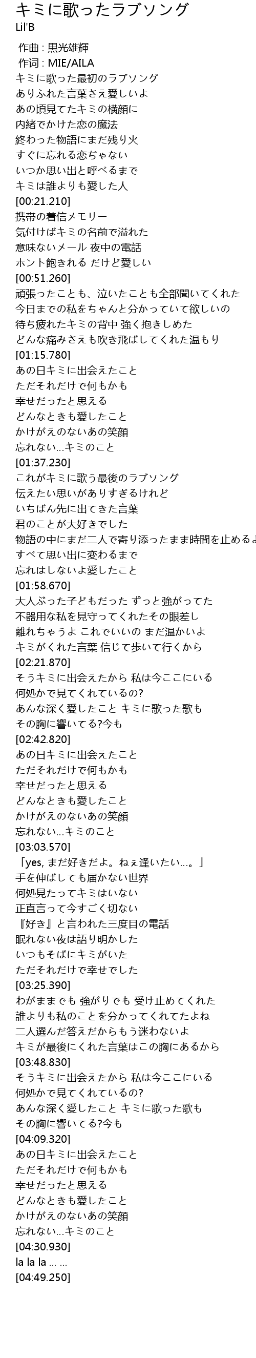 | [01:38.240] | これがキミに歌う最後のラブソング |