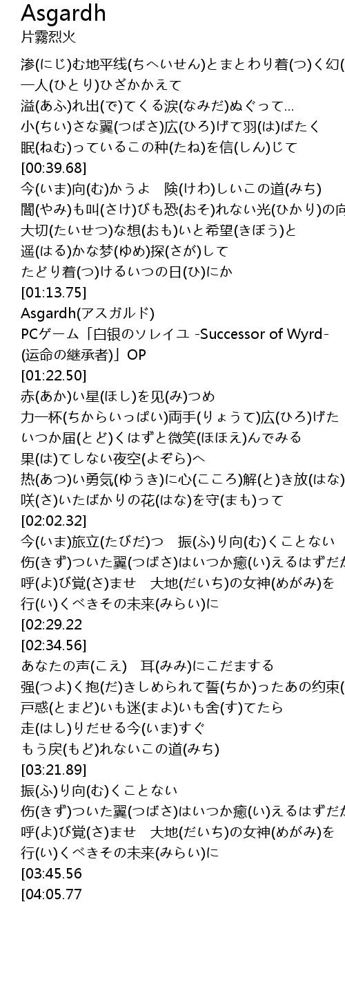 | [01:20.50] | PCゲーム「白银のソレイユ -Successor of Wyrd- (运命の継承者)」OP |