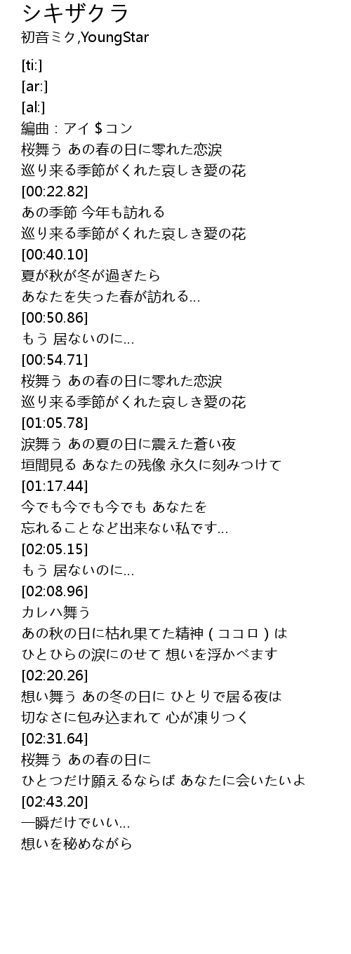 | [02:31.95] | 桜舞う あの春の日に |