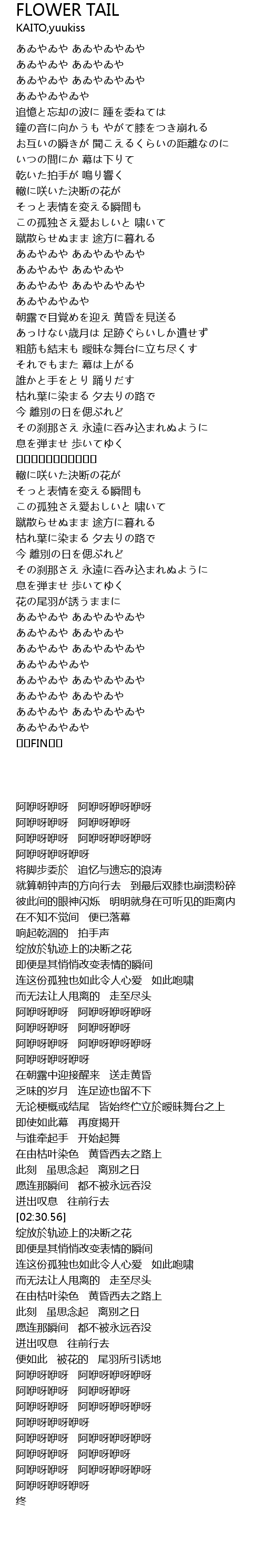 | [02:30.56] | ✿❀✿❀✿❀✿❀✿❀✿ |