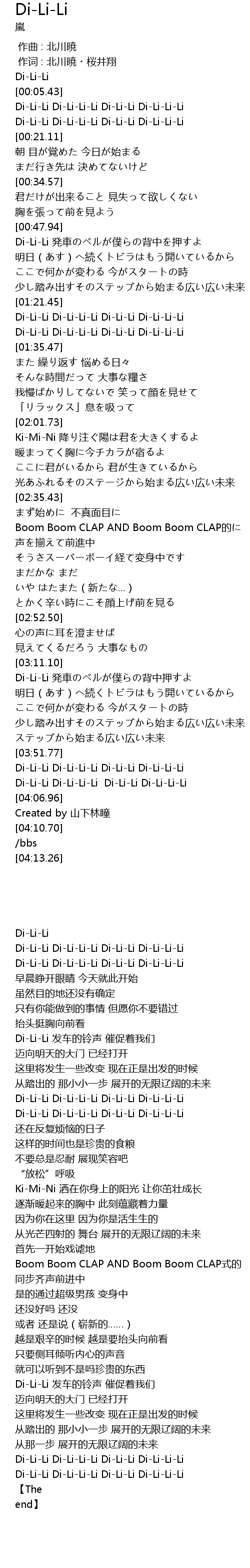 | [03:59.27] | Di-Li-Li Di-Li-Li-Li Di-Li-Li Di-Li-Li-Li |