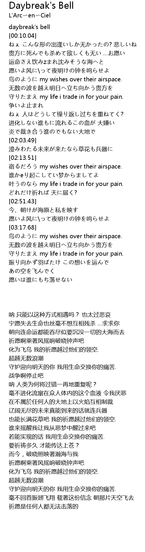 | [03:08.19] | 祈愿啊乘著风摇响破晓钟声吧 |