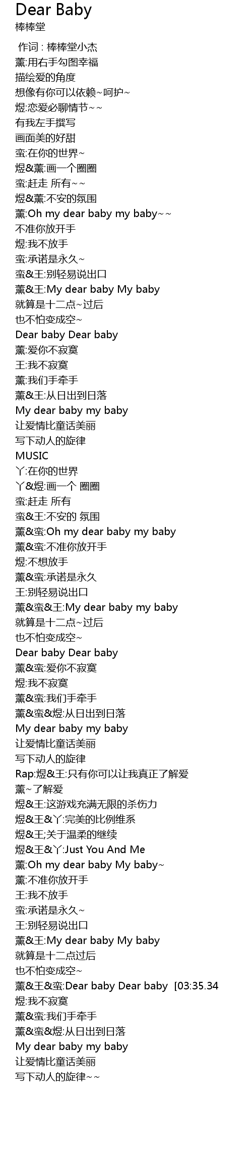 | [03:31.89]薰&王&蛮:Dear baby Dear baby [03:35.34] | xūn mán: ài nǐ bù jì mò |
