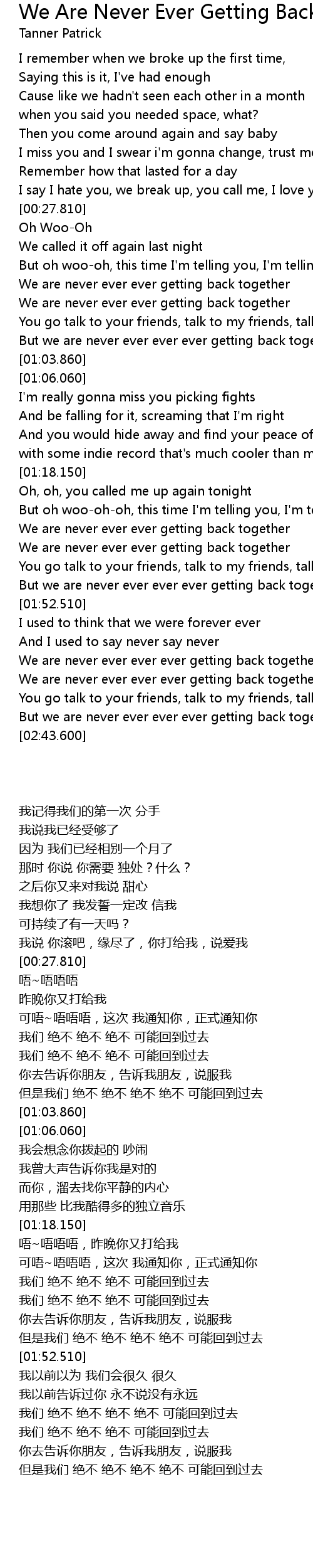But we are never ever ever ever getting back together |