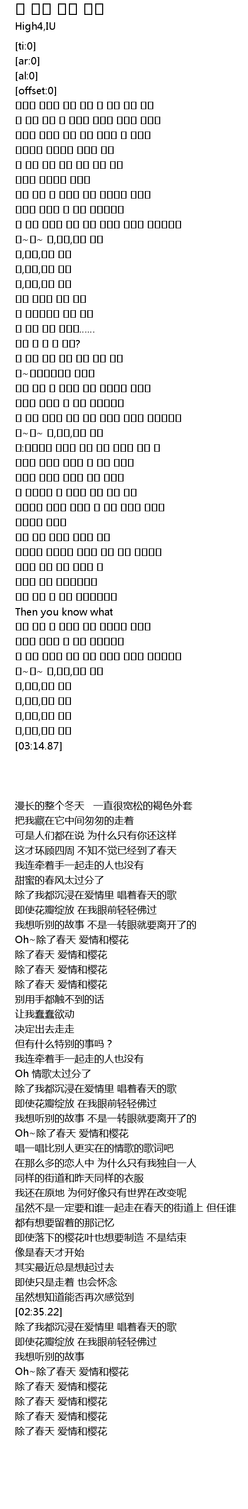 | [03:10.67] | 봄,사랑,벚꽃 말고 |