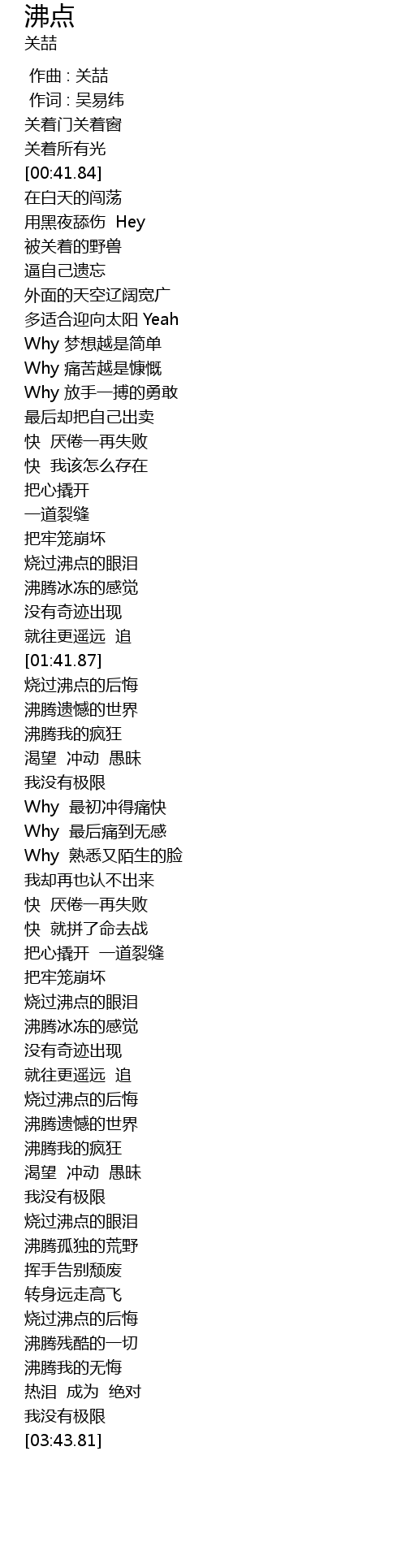 | [01:42.83] | 烧过沸点的后悔 |
