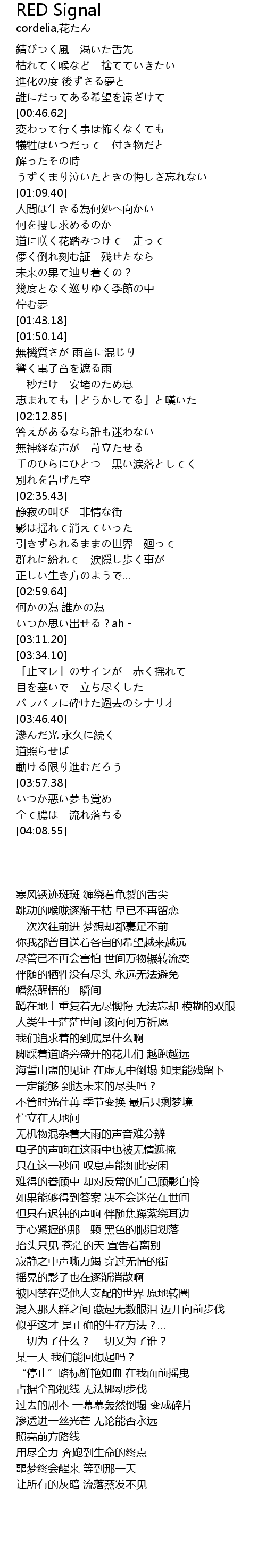 | [03:34.89] | 「止マレ」のサインが 赤く揺れて |