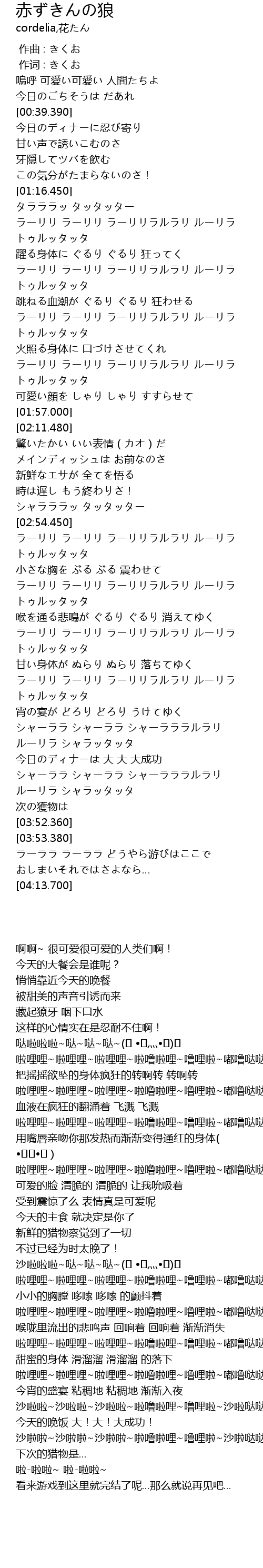 | [03:55.460] | ラーララ ラーララ どうやら游びはここで おしまいそれではさよなら… |