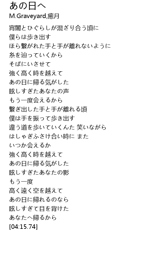 | [03:01.01] | あの日に帰る気がした |