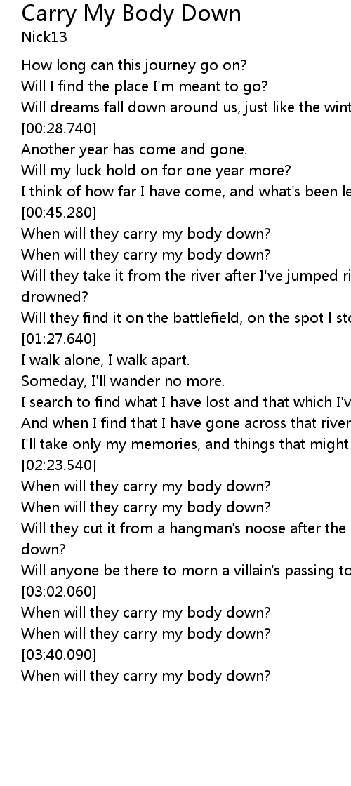 | [03:44.200] | When will they carry my body down? |