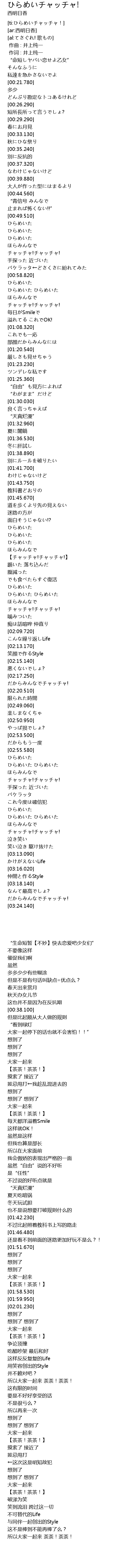 | [02:06.520] | チャッチャ!チャッチャ! |