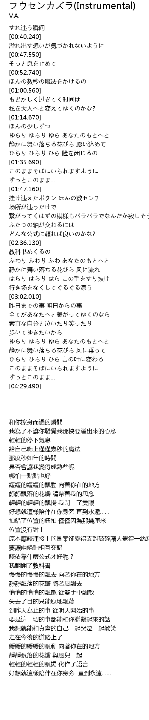 | [02:45.200] | 靜靜飄落的花瓣 隨著風飄去 |