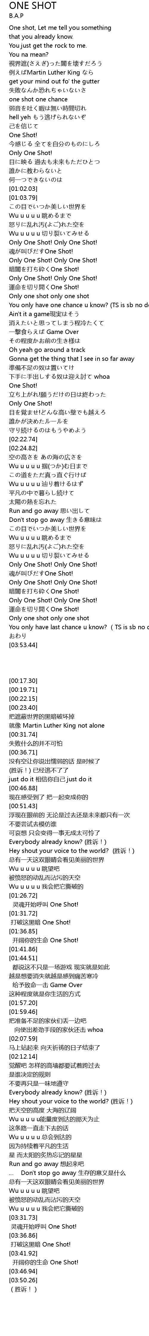 | [01:36.85] | Only One Shot! Only One Shot! |