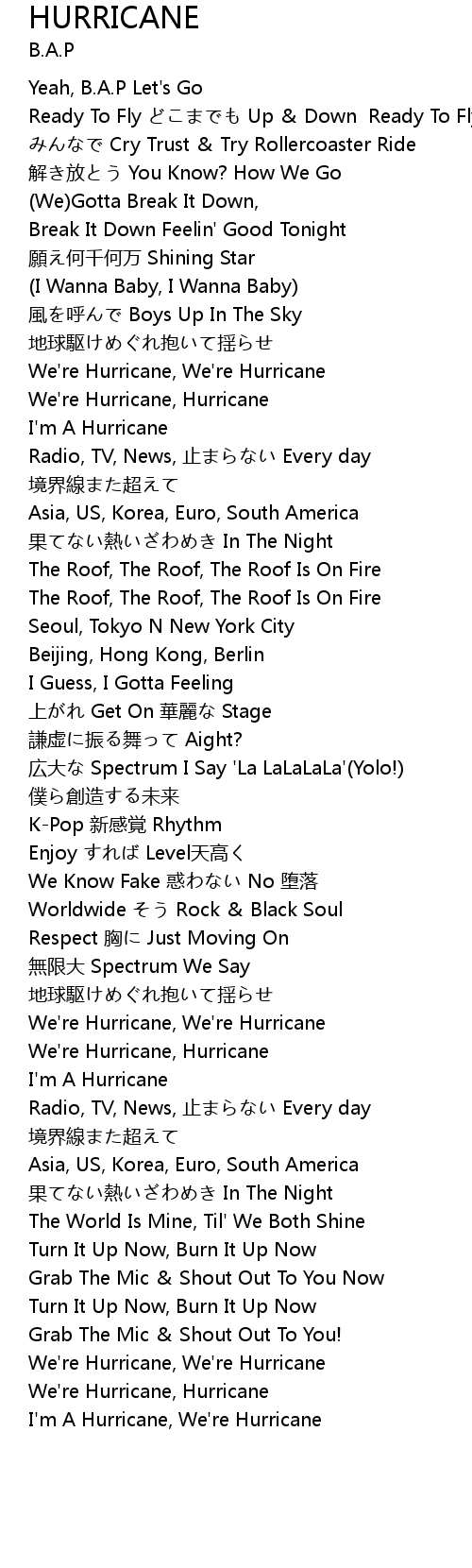 | [02:01.21] | We're Hurricane, We're Hurricane |
