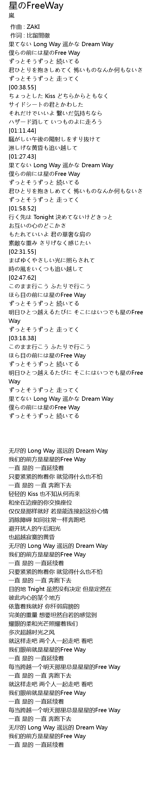 | [03:04.62] | 每当跨越一个明天那里总是星星的Free Way |