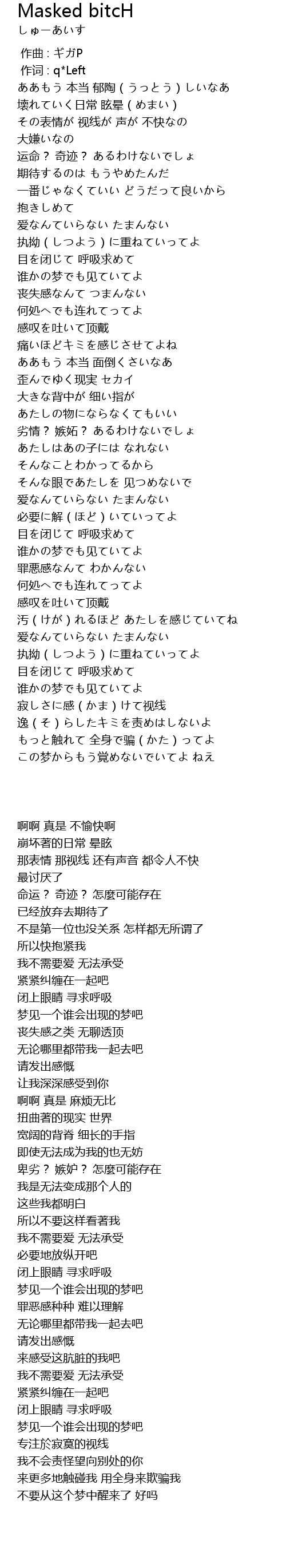 | [00:01.00] | 作词 : q*Left |