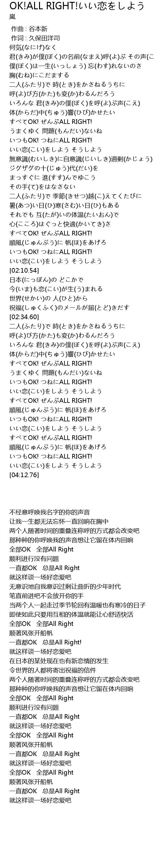 | [03:48.34] | いつもOK! つねにALL RIGHT! |