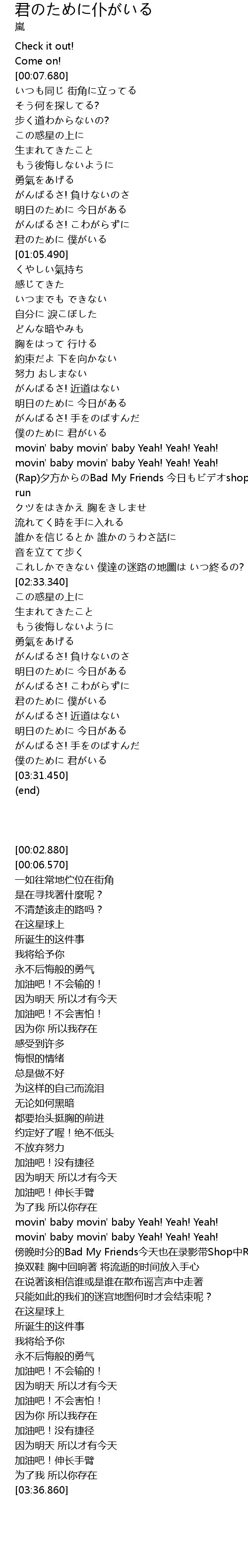 | [02:18.450] | Rap xi fang Bad My Friends jin ri shop run run run |