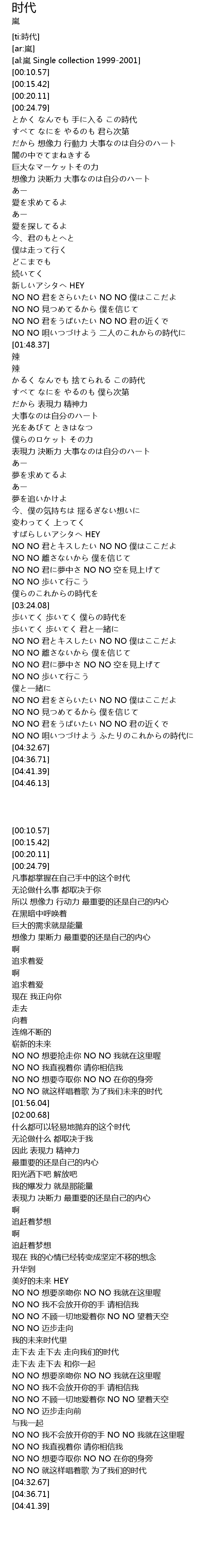 | [01:41.18] | NO NO 就这样唱着歌 为了我们未来的时代 |
