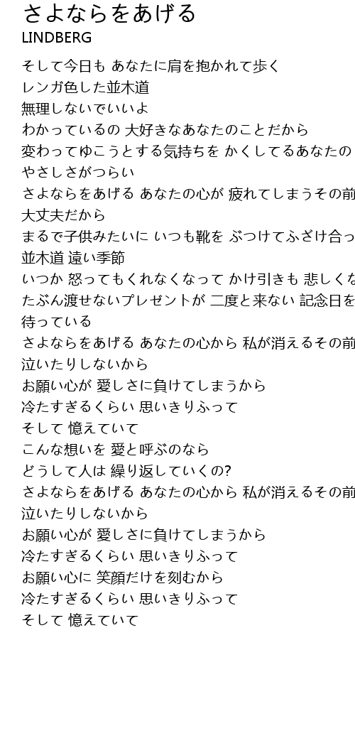 | さよならをあげる あなたの心が 疲れてしまうその前に | |