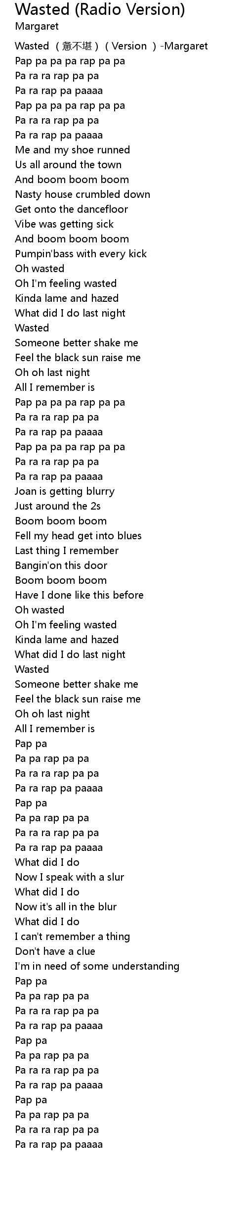 | [00:00.00] | Wasted bei bu kan Version Margaret |