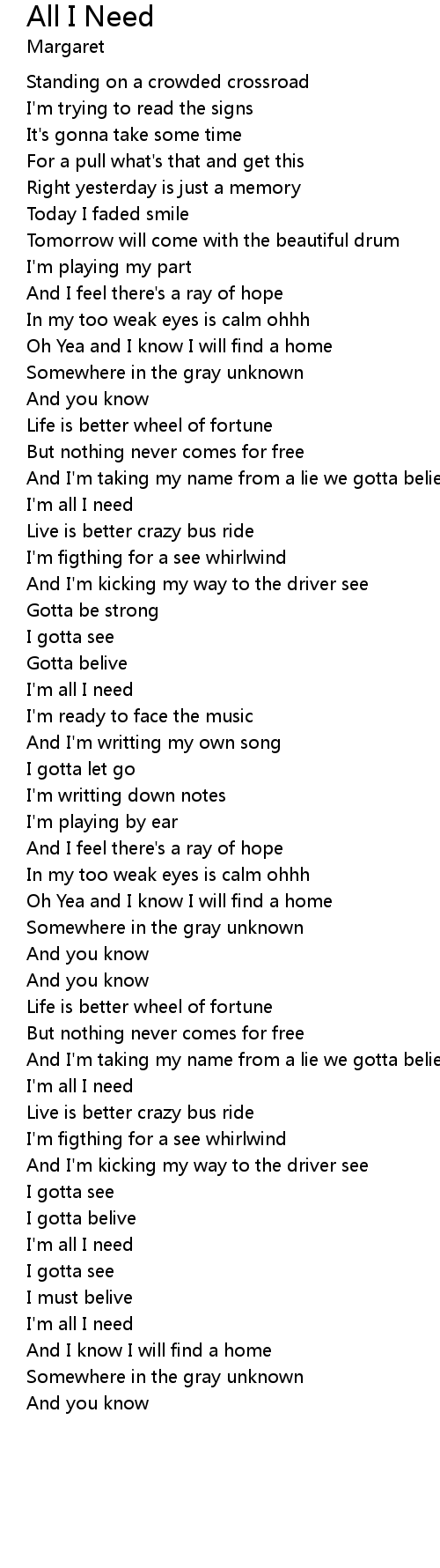 I'm all I need |