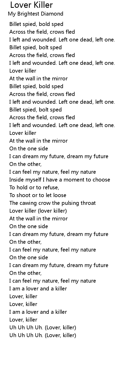 Uh Uh Uh Uh. (Lover, killer) |